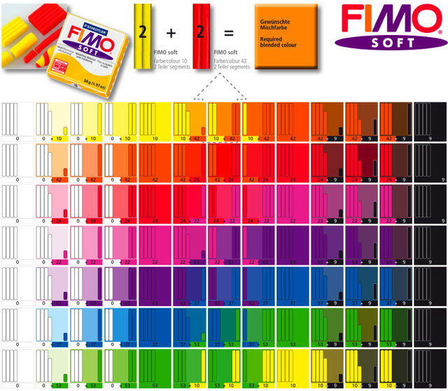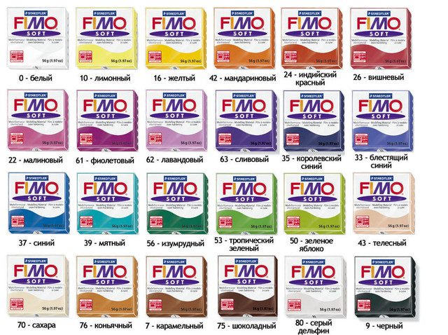 Полімерна глина Фімо - відмінний матеріал для ліплення. Це еталон глин і найперша полімерна глина подібного типу. На вигляд він дуже нагадує пластилін, процес лепки дуже схожий, але пластика вимагає запікання в духовці (є спеціальна пгумки для запікання в мікрохвильовці), після чого виріб твердне і приймає закінчений вигляд. FIMO SOFT - більш м'яка, зручна в роботі серія, досить пластичний, податливий і має хорошу колірну палітру. За допомогою цієї пластики зручно робити великі елементи. Класик-більш жорстка глина спочатку, добре тримає кордон кольору для різних технік. Для початкового або дитячої творчості розгляньте FIMO Soft, яка має споконвічно більш м'яку консистенцію.